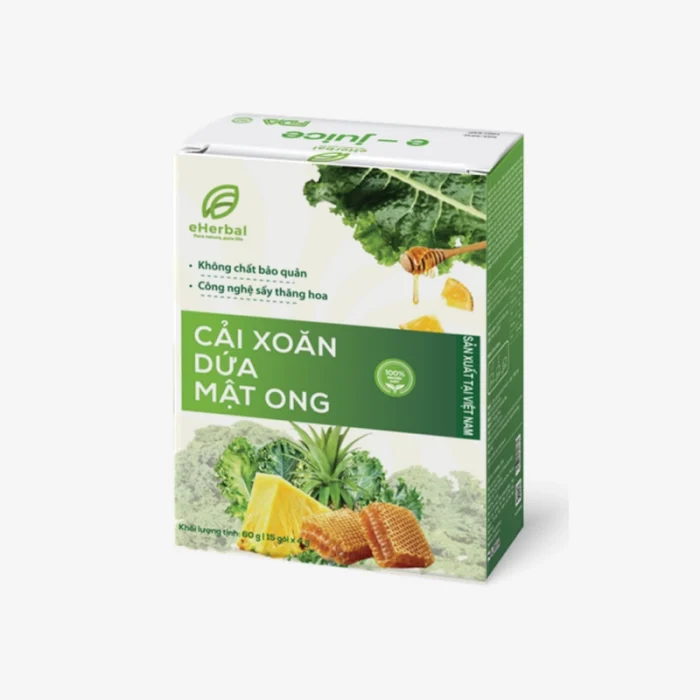 Bột Cải xoăn – Dứa – Mật ong sấy thăng hoa là sự kết hợp độc đáo và giàu dinh dưỡng tạo nên một hỗn hợp dưỡng chất giàu axit amin, enzyme và các chất chống oxy hóa tự nhiên, mang đến nhiều lợi ích về sức khoẻ. Đây không chỉ là một loại thức uống thông thường mà còn là sản phẩm sức khỏe mang đến năng lượng, sự độc đáo về hương vị. Chúng tôi sử dụng công nghệ sấy thăng hoa hiện đại nhất hiện nay giữ lại tối đa các dưỡng chất quý để mang đến những trải nghiệm tuyệt vời cho sức khỏe của bạn.